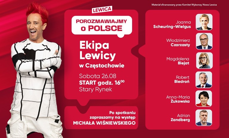 Przyjdź w sobotę 26 sierpnia na Stary Rynek w Częstochowie. Porozmawiamy o Polsce po wyborach. Polsce naszych marzeń. Lewica wie, jak to zrobić!